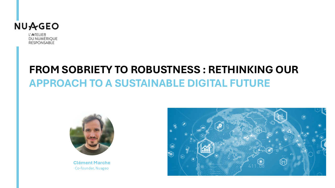 Our Speaker: Clément Marche from Nuageo will explore how organizations can move from digital sobriety to digital robustness, rethinking the foundations of a truly sustainable and resilient digital future.